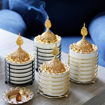 Quemador de incienso religioso de cerámica y metal de estilo de Oriente Medio Simple, difusor de aroma Eid árabe, soportes de incienso e incienso