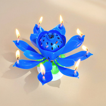 Candeline musicali di compleanno con fiori di loto a doppio strato rotanti che cantano batteria ecologica elettronica leggera di paraffina