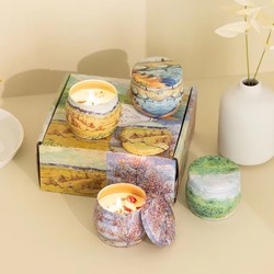 Retrò di pittura a olio di latta essiccato fiore profumato candela, cera di soia olio essenziale candela 4 pezzi Set decorazione per la casa Hotel Yoga Spa