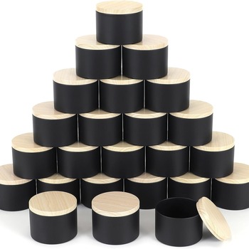 Lata mate de 4oz hecha a mano ecológica con tapa de grano de madera, tarro de vela de Metal blanco y negro vacío para hacer velas DIY