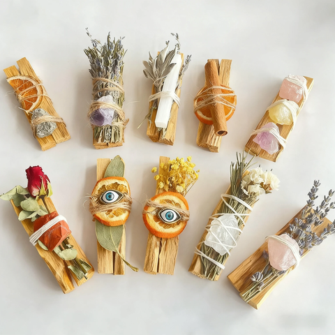 Bastoncino di sandalo naturale con fascio di Palosanto pietra preziosa di cristallo fiore essiccato bastone per aromaterapia per la pulizia della casa di purificazione
